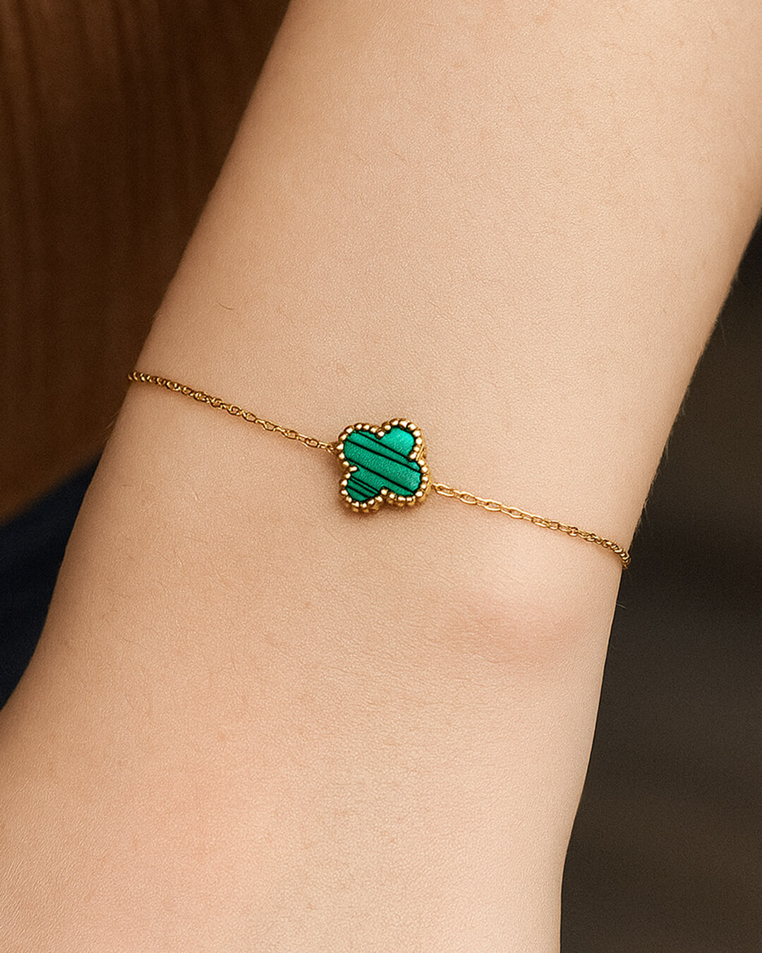 Narukvica sa detelinom je elegantna i moderna, izrađena od visokokvalitetnih materijala. Ima inovativan dizajn s sofisticiranim detaljima, za sve prilike i praktičnu kopču.