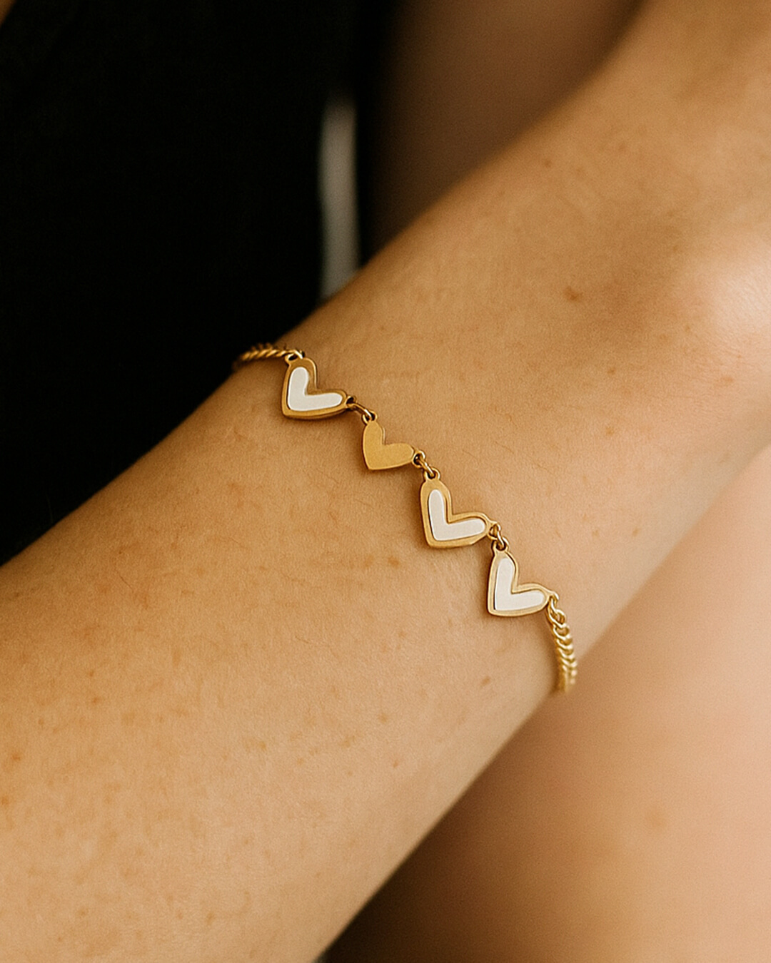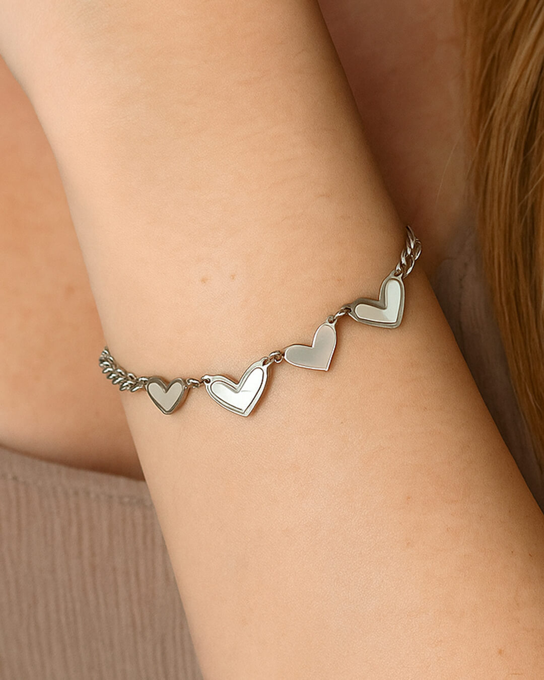 Narukvica sa privescima srca poludragi kamen je elegantna i moderna, izrađena od visokokvalitetnih materijala. Ima inovativan dizajn s sofisticiranim detaljima, za sve prilike i praktičnu kopču.