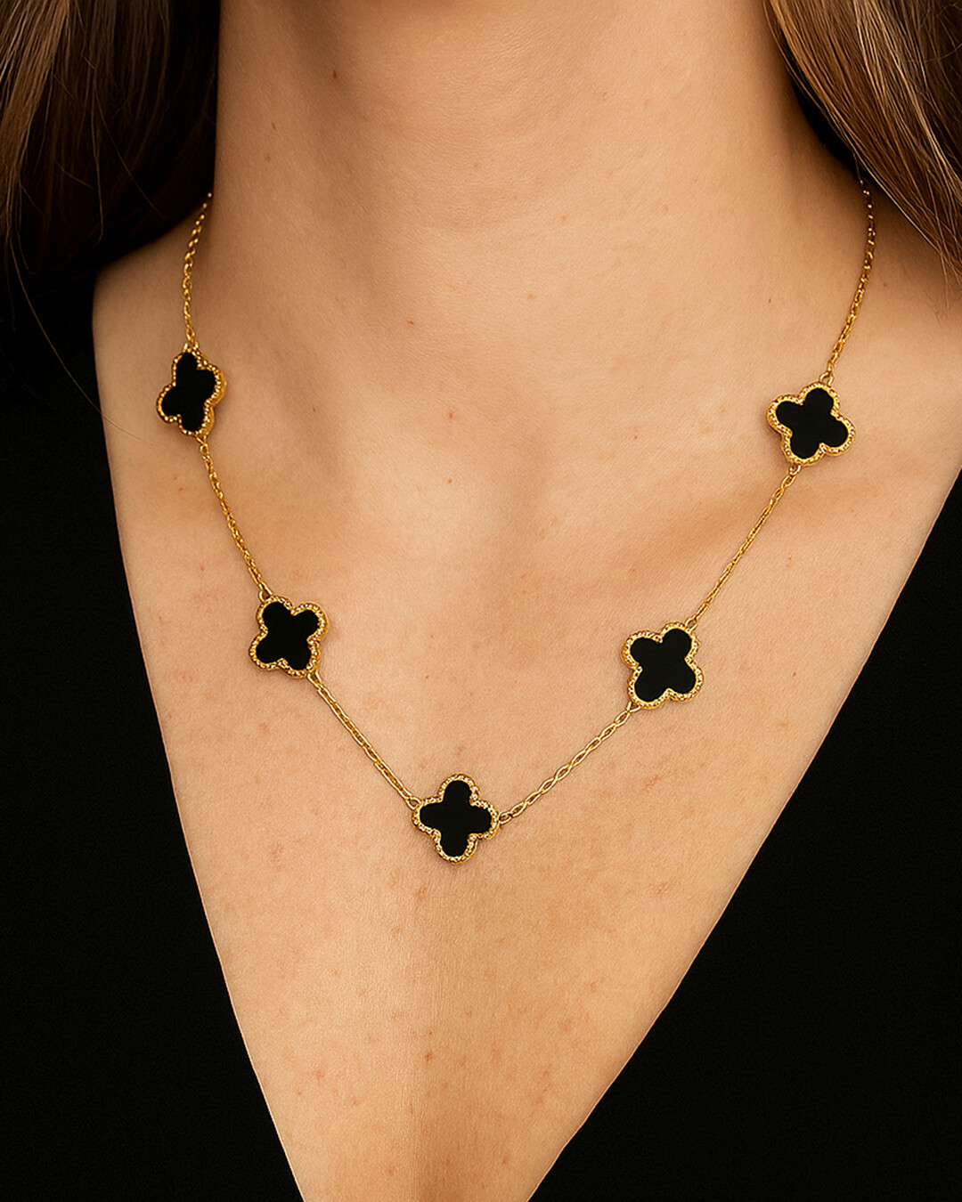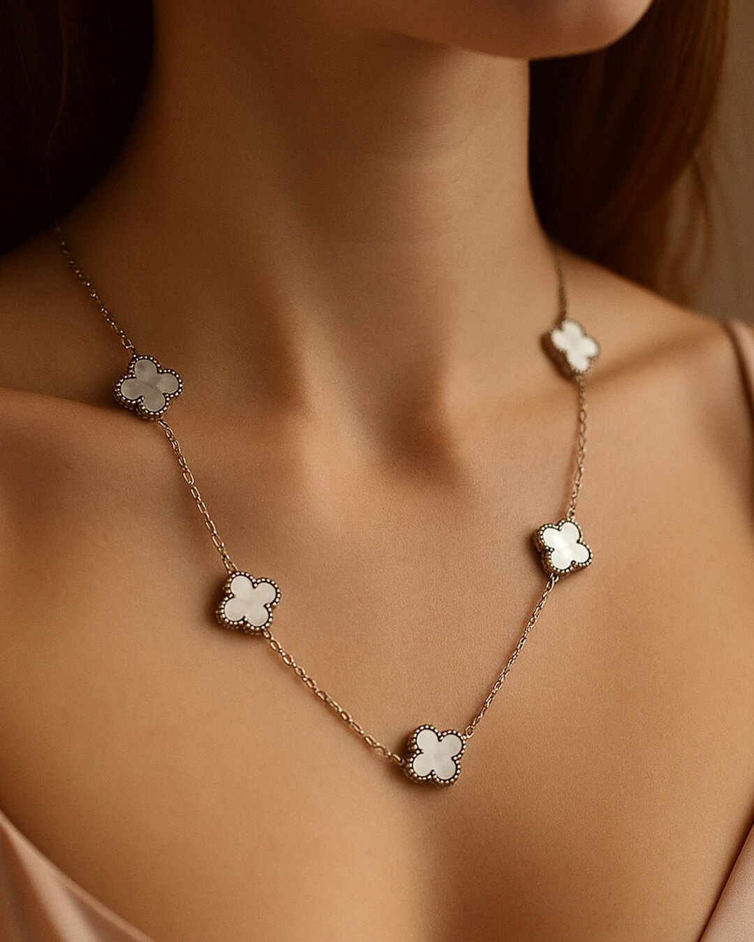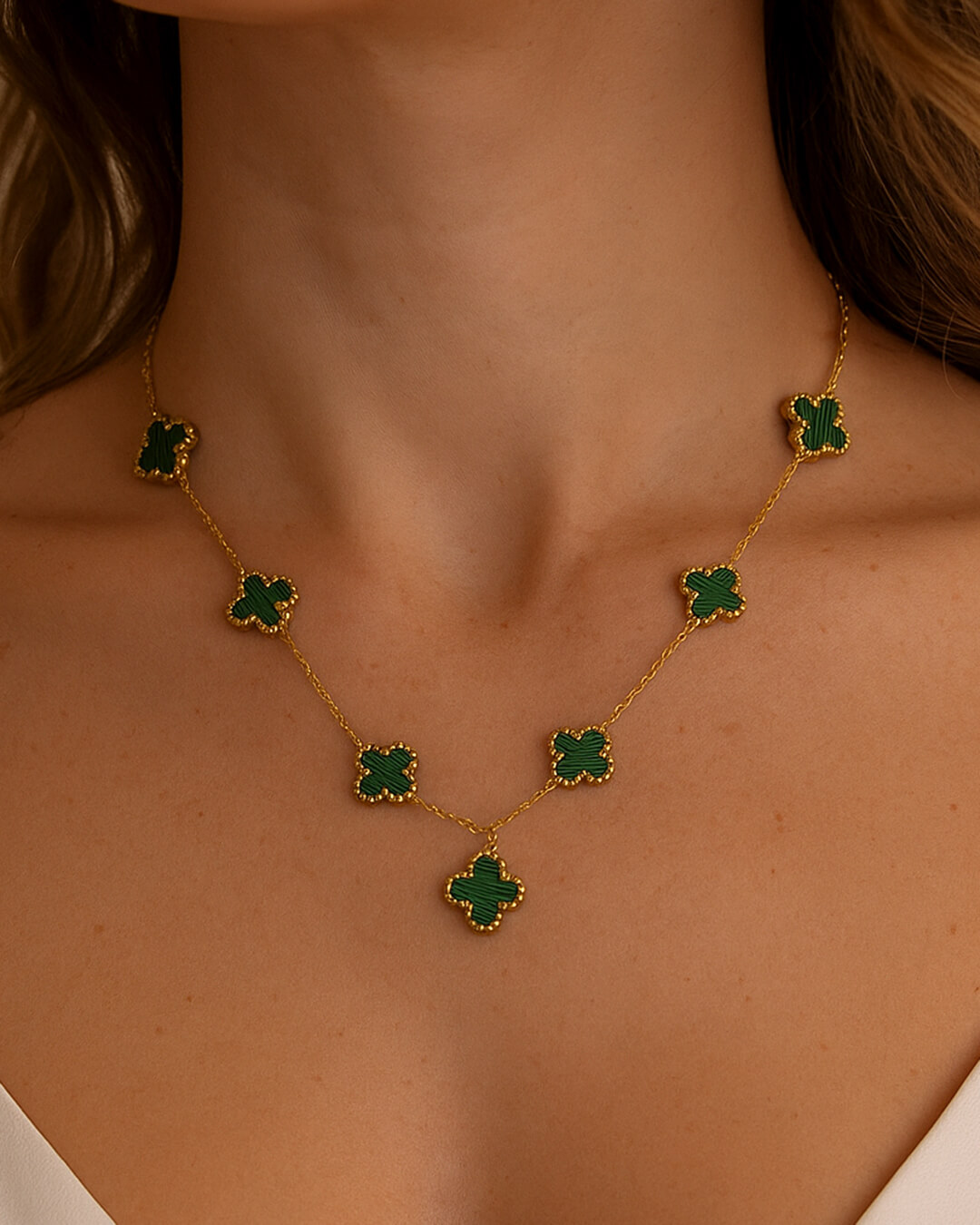 Ogrlica sa privescima deteline idealna za svakodnevno nošenje, kao i posebne prilike. Izrađena je od kvalitetnog materijala, koji je otporan na kvašenje i habanje.