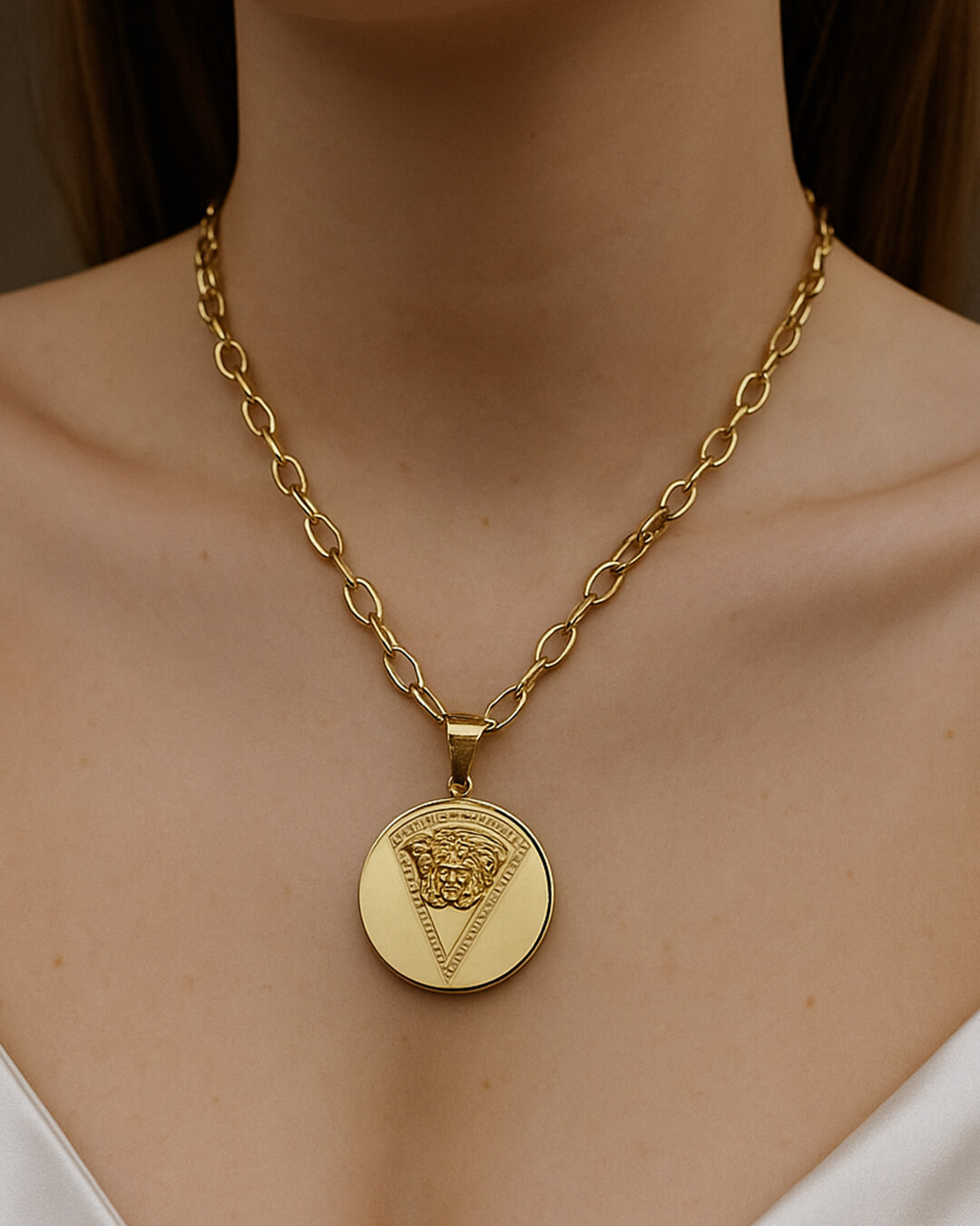 Pletena luksuzna ogrlica sa priveskom pločice idealna za svakodnevno nošenje, kao i posebne prilike. Izrađena je od kvalitetnog materijala, koji je otporan na kvašenje i habanje.