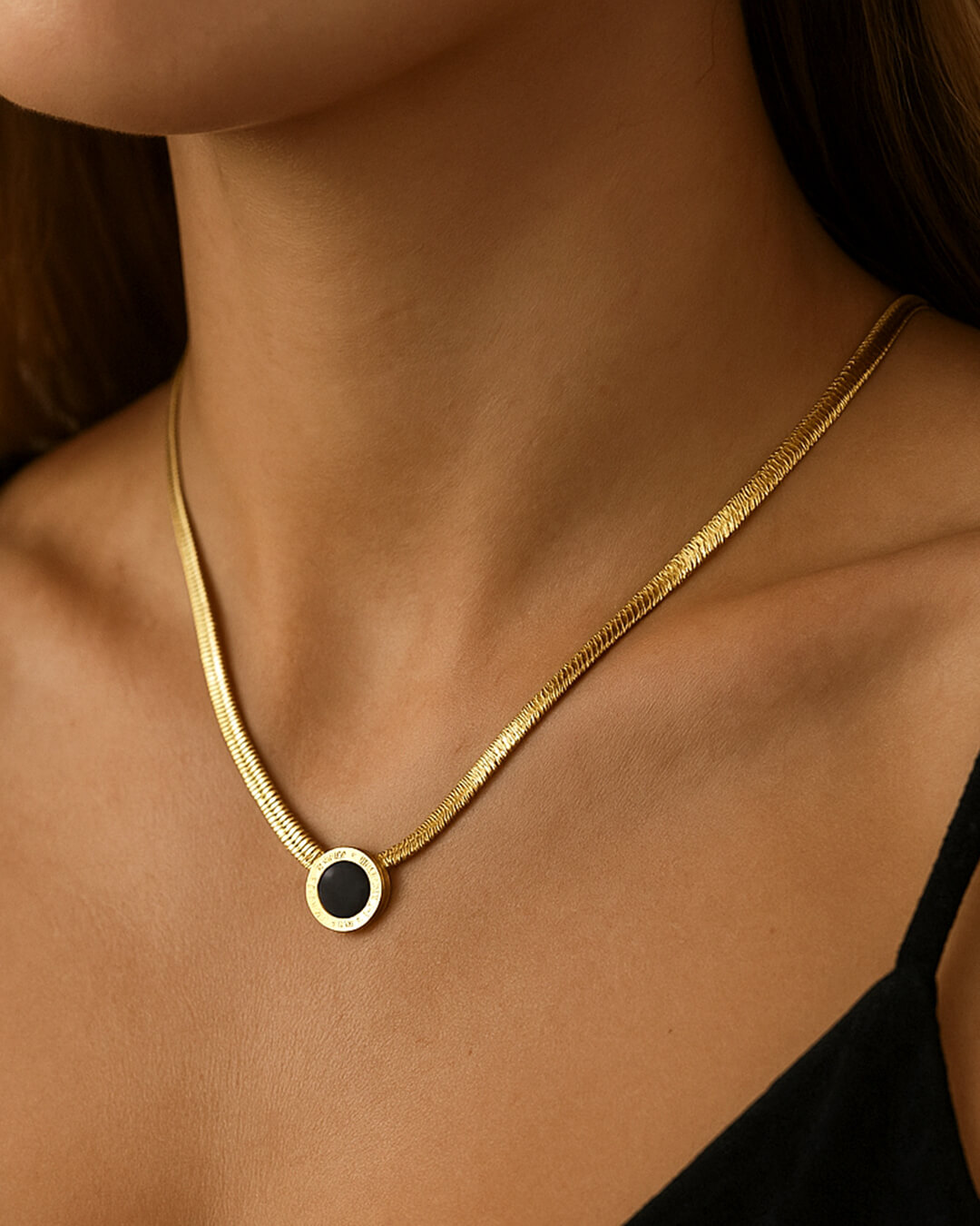 Snake ogrlica sa crno zlatnim priveskom idealna za svakodnevno nošenje, kao i posebne prilike. Izrađena je od materijala, koji je otporan na kvašenje.