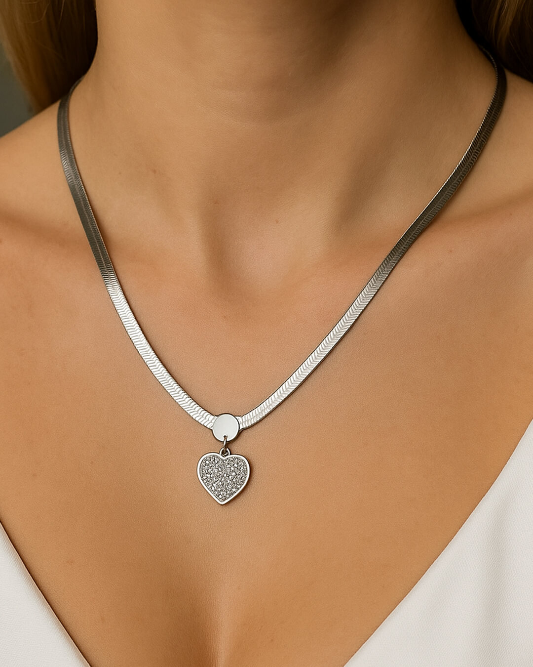 Snake ogrlica sa priveskom srca sa cirkonima